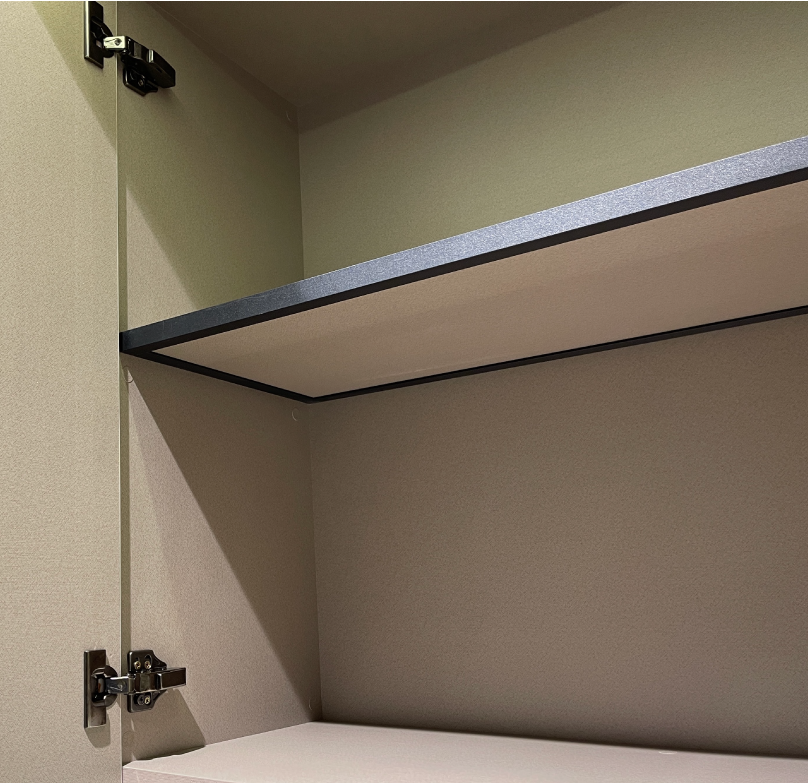 Colour carcass to further elevate interior of the cabinets. There are no cavities on the cabinet, and all of the surfaces are flat and even. It can support large objects.